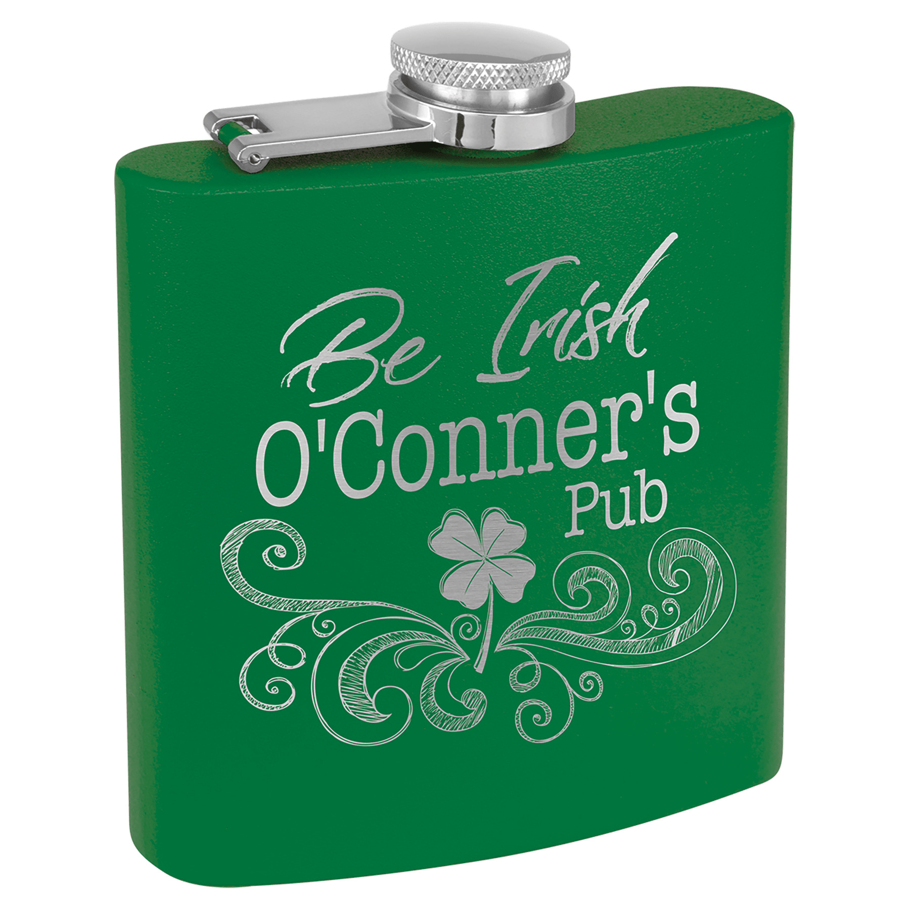 Our 6 oz. Green stainless steel flasks are powder coated for an exceptional matte, textured, look and feel. Our flasks engrave silver for brilliant contrast! Personalize with your logo, image or text to create stunning Bridesmaid Gifts, Promotional Products, Corporate Gifts, Gifts For Her or Gifts For Him. Each flask comes with attached leak resistant cap.