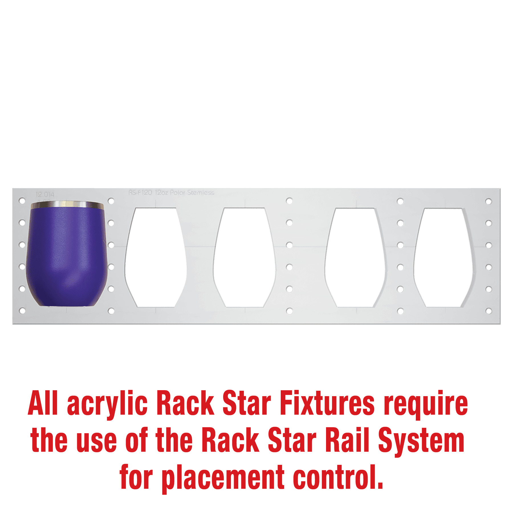 This is a custom fixture for the 12 oz. Polar Camel Stemless Tumblers. The product sits level in the fixture and all you have to do is focus the machine and let it run! It will increases your production over 300-400% over a rotary and decreases set up time substantially. A corresponding digital file can be found with each fixture.