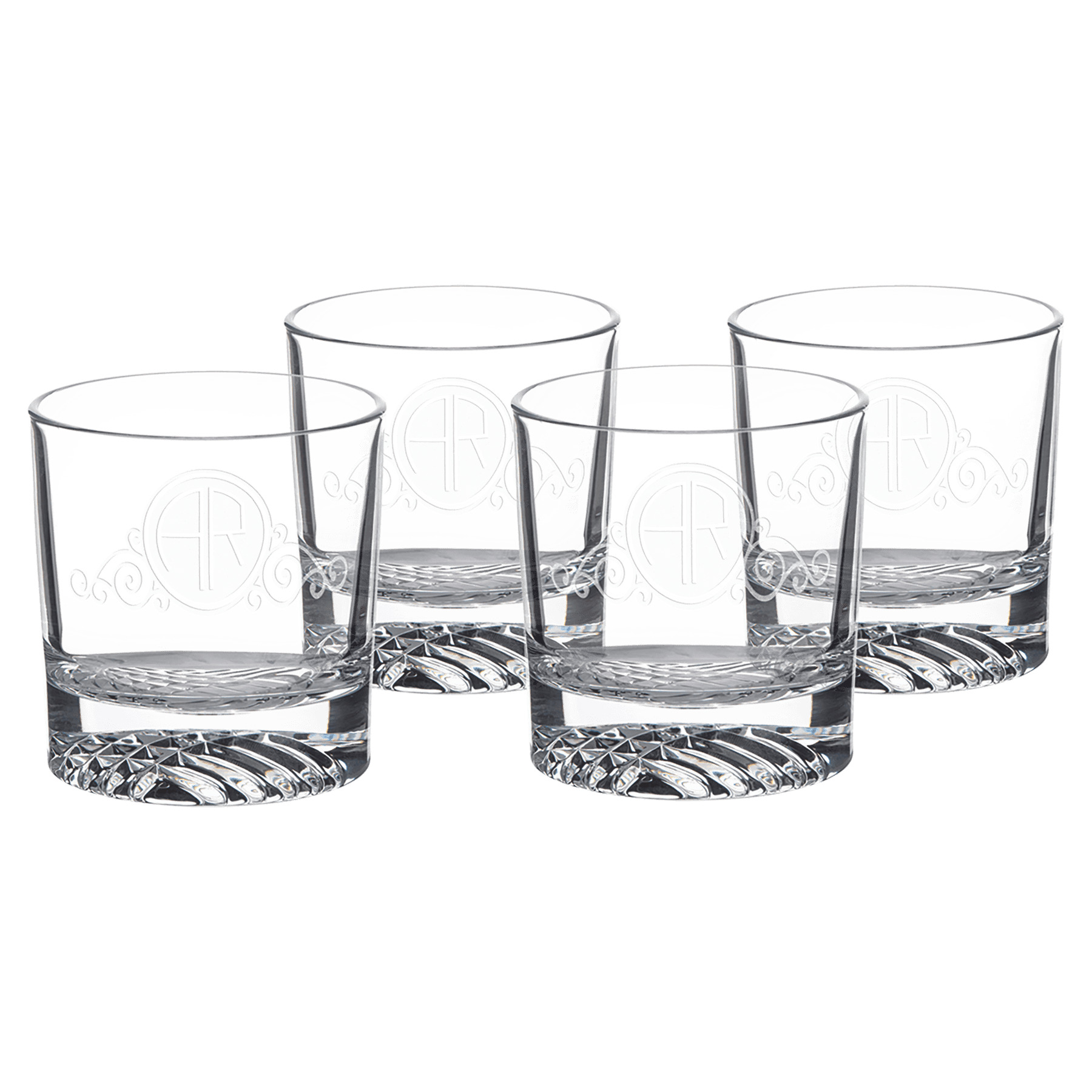 These are the same rocks glasses included in the DCS401S set. These rocks glasses have a design cut into the bottom. The glasses can be personalized and are packaged in a gift box with EVA foam for protection.