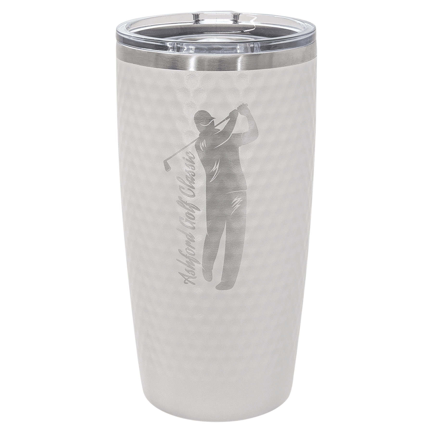 If you’re looking for a new and unique award for a golf tournament or a great personalized gift for the golfers in your life, this Polar Camel 20 oz. tumbler with dimples is perfect! The tumbler resembles a golf ball and can be personalized with the graphics of your choice! The tumbler has the heat/cold retention properties you expect from Polar Camel drinkware and comes with a slider lid to prevent spills. Tapered at the bottom it fits most cup holders.