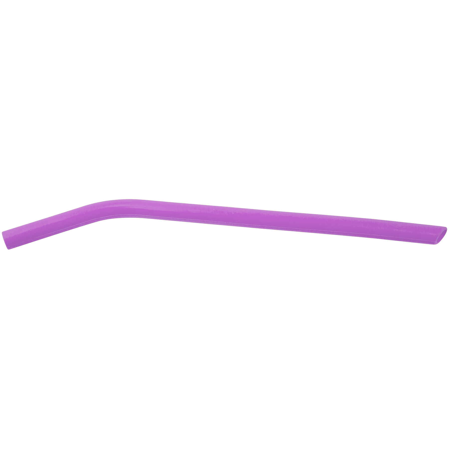 Purple colored silicone straw measures 7/16 in diameter and is 10 inches in length.