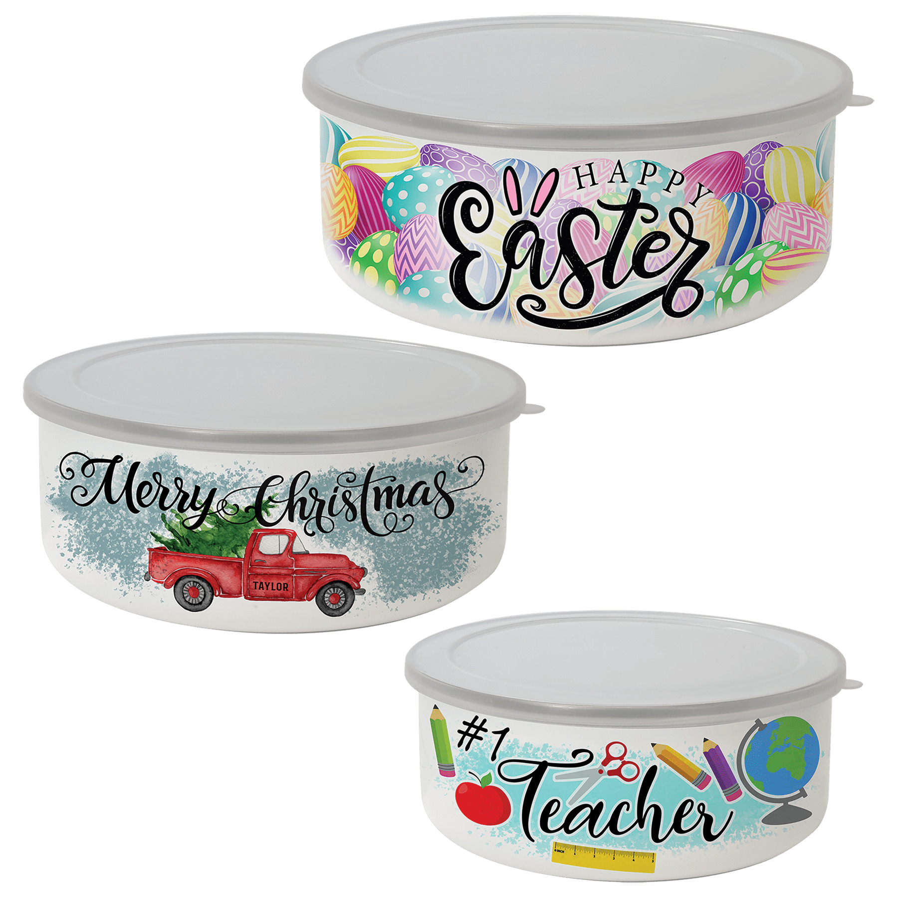 Short Enamel Bowls in 3 sizes can be customized in full color! As a set or individually, they make a wonderful, useful gift for a house warming, bridal shower, wedding, or any gift giving occasion. They’re also a unique item to sell in a souviner or gift shop!